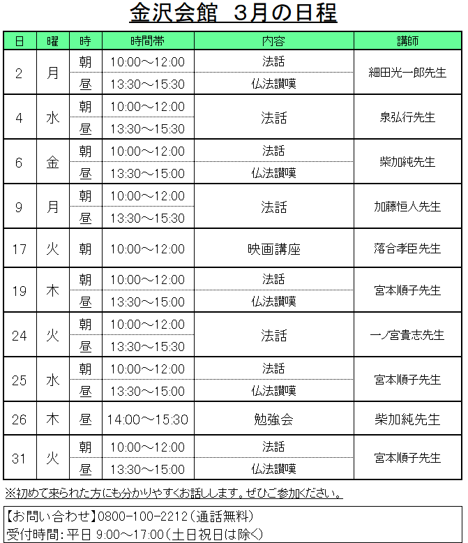 金沢会館の以下の行事は、どなたでも参詣できます。