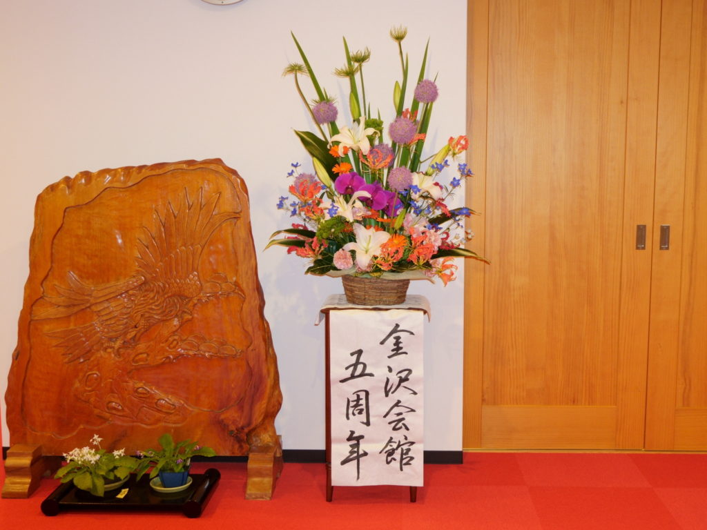 今回、5周年記念行事ということで、お仏花はじめ、会館のお花も一段ときれいに飾られました。