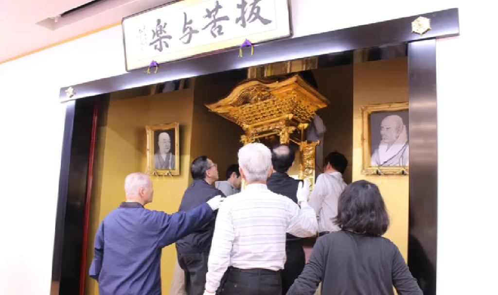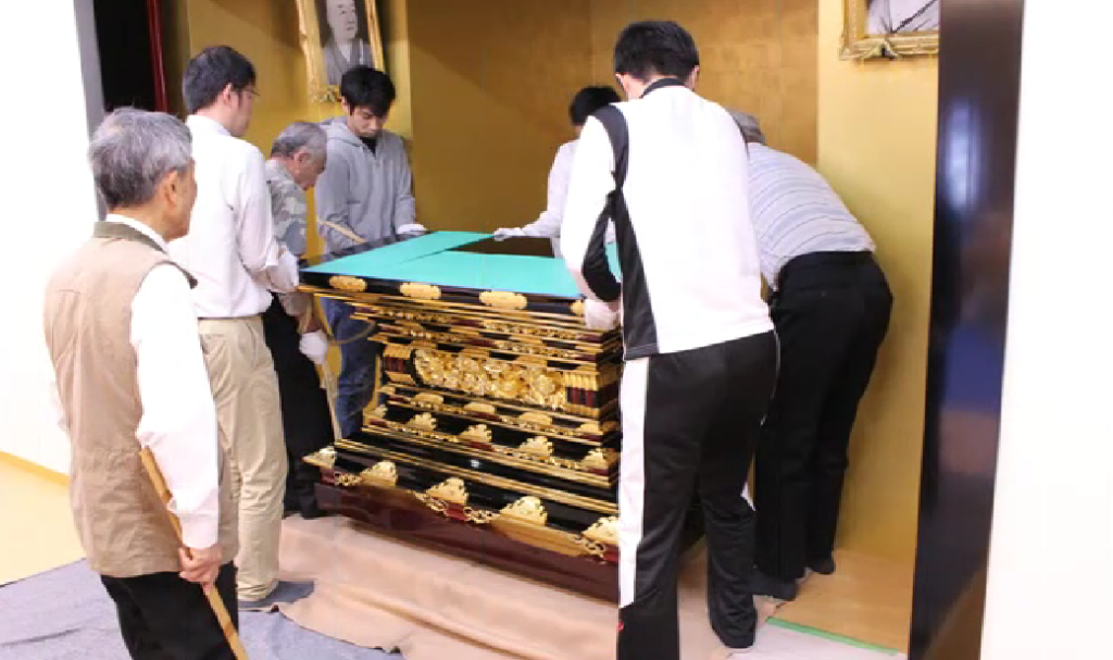 参加者で力を合わせて運び、慎重に設置。荘厳華麗で立派な、御仏壇になりました。